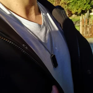 A corrente robusta complementa o visual, tornando esta peça ideal para quem gosta de acessórios com significado e personalidade.
