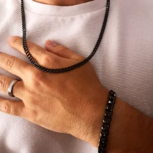 Este belo conjunto combina um design audaz e vigoroso com uma cor preta suave mas vibrante