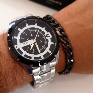 Esta pulseira possui um toque moderno num tom preto elegante.