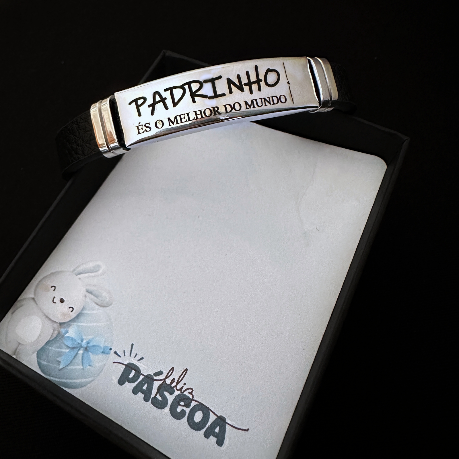 Uma pulseira moderna e confortável, ideal para homenagear um padrinho de forma especial.
